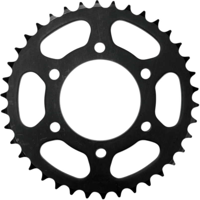 Rear Sprocket - 38-Tooth - Kawasaki Steel Rear Sprocket Sunstar is the largest OEM and aftermarket supplier of motorcycle and ARV sprockets in the manufacturing world for every major Japanese motorcycle builder since 1946 Computer-designed weight reduction holes for the best combination of lightness, strength and stability Exclusive tooth-valley design provides 50% better chain contact area for the best power transfer possible Cleaning grooves added at bottom of tooth area Fitment: