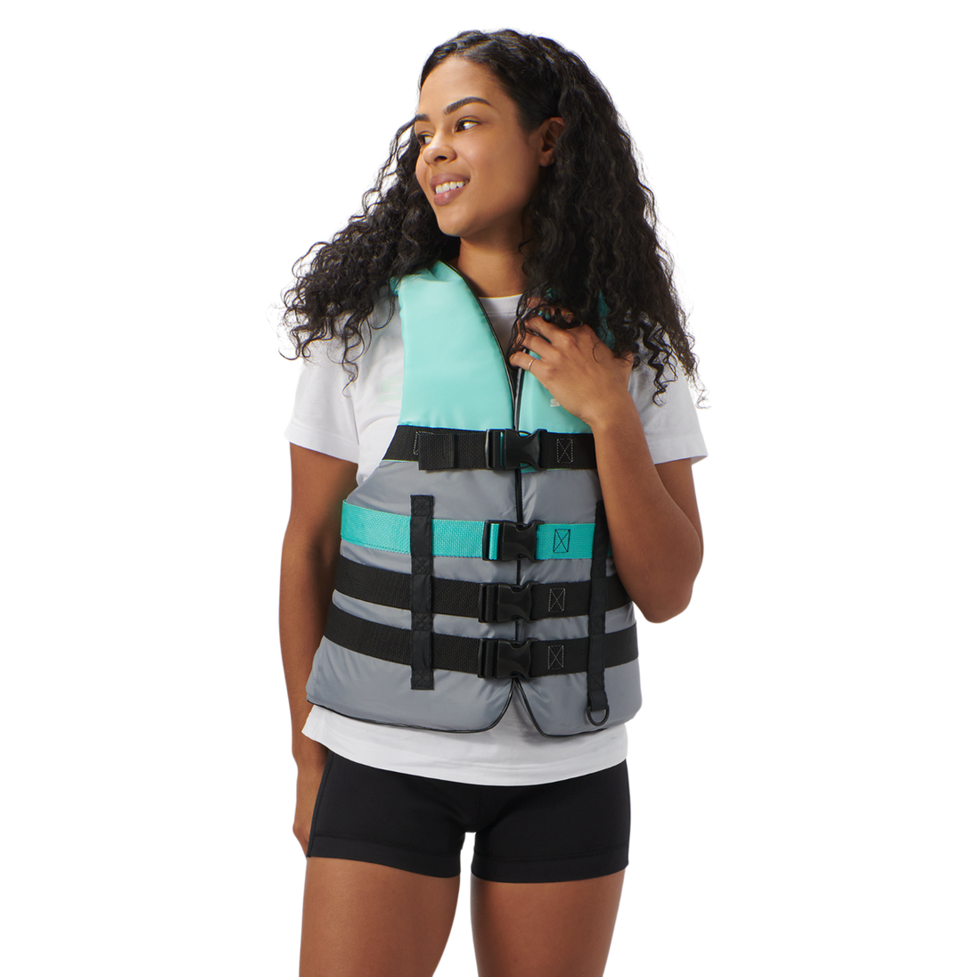SEA-DOO NAVIGATOR PFD (US/CA) Navigate your favorite lake activities in this unisex PWC life jacket. The Sea-Doo Navigator PFD is a unisex life jacket that's crafted from a lightweight and quick-drying polyester shell with expandable and comfortable polyethylene foam inserts. The dual-sized design makes sharing easy,. Plus, large-cut armholes allow for a full range of motion. Completing this Coast Guard-approved Sea-Doo PFD are features like a goggle attachment loop and key lanyard D-Ring. Features: Unisex value built PFD For women, we recommend to chose one size smaller from your regular size. This style is unisex and tends to fit bigger. Polyethylene foam inserts. Dual-sized making it perfect for sharing Comfortable fit. Armholes cut large for riding comfort. Loop at back neck to attach your goggles to your vest. D-ring for key lanyard. Coast Guard approved. Shell: 100% Polyester Insulation: 100% Expandable Polyethylene
