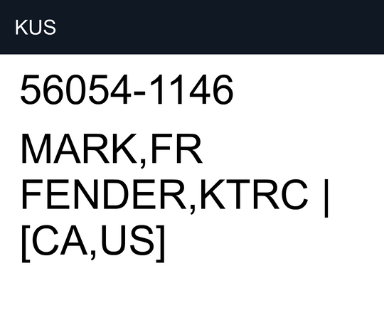 KUS MARK,FR FENDER,KTRC | [CA,US] 56054-1146