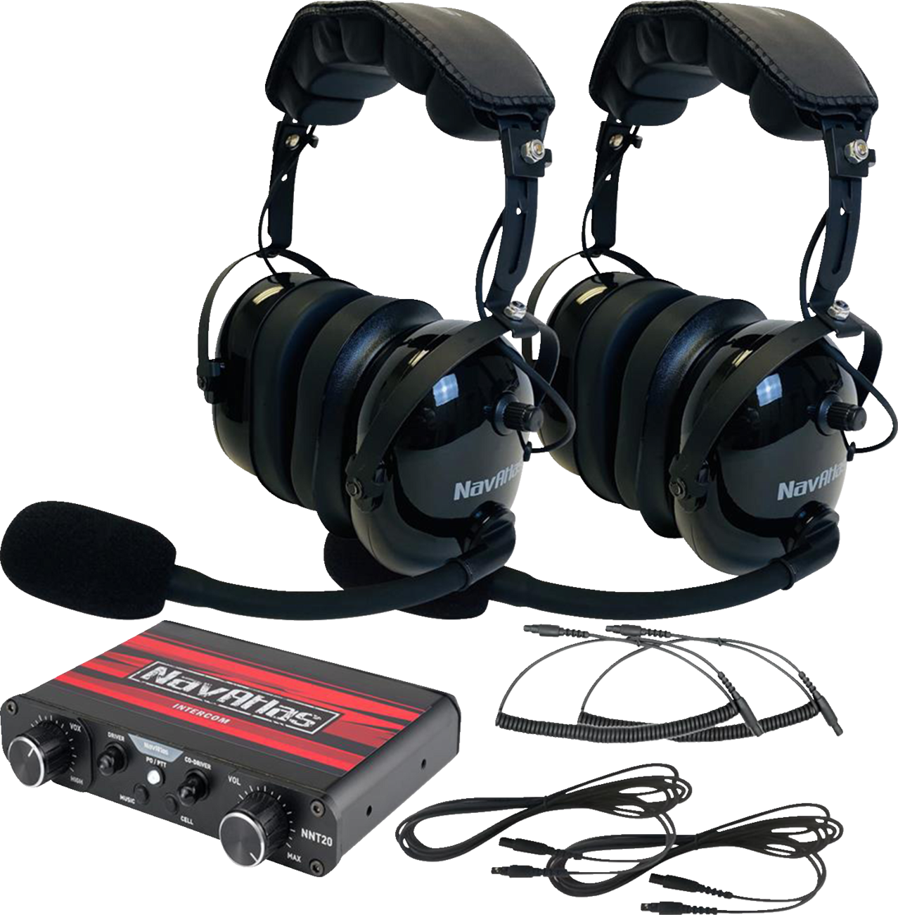 Kit includes: 1 NNT20 Intercom, 1 Pair NO303 Over-the-Head (Stereo) Headsets, 2 HCF4 (Front) 4’ (EU: 10,16 cm) coil cables connecting the headsets to the HEC10 extension cables and 2 HEC10 (Front) 10’ (EU: 25,4 cm) extension cables connecting the intercom to the HCF4 coil cables to headsets