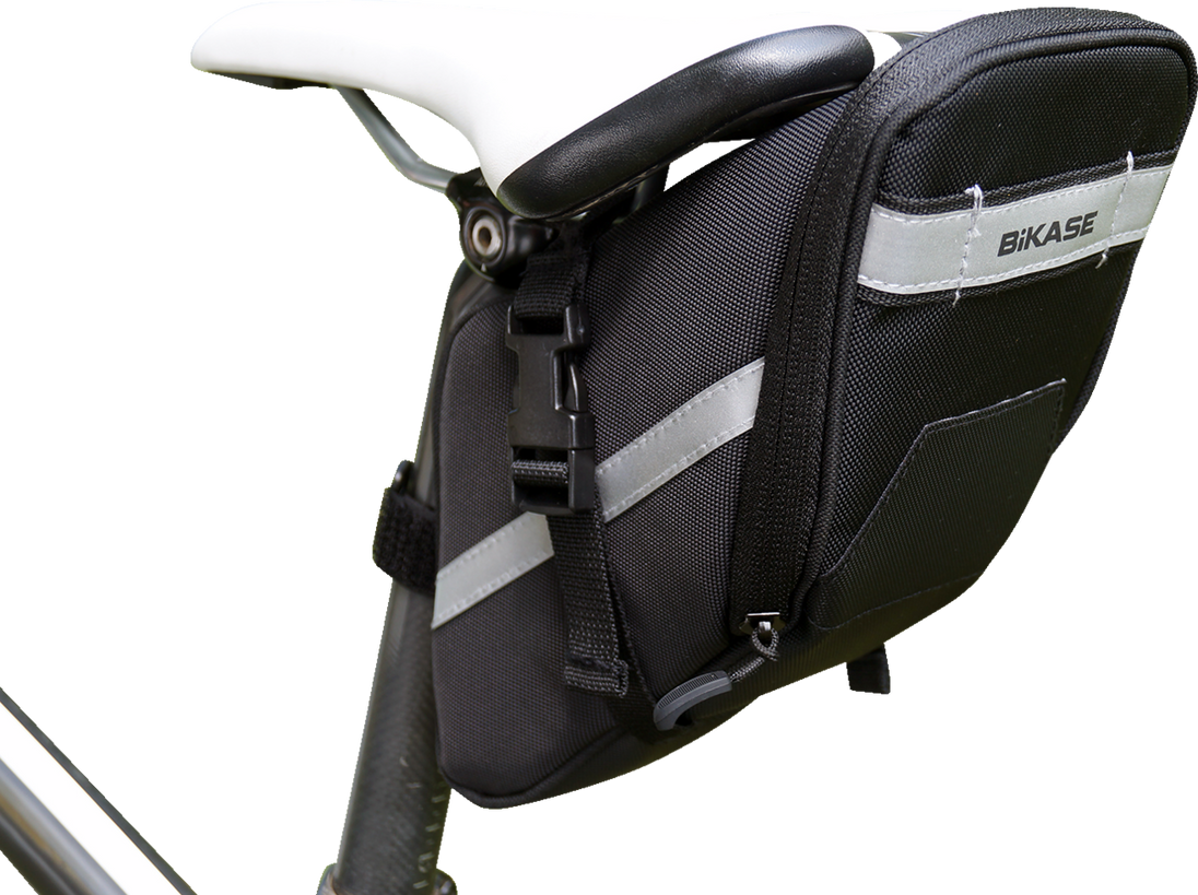 Momentum Seat Bag - XL Momentum X-Large Seat Bag With a narrow contoured design, the Momentum seat bag fits snugly between the seat post and saddle without interfering with the rider Uses two quick disconnect buckles with straps that run through the seat rails and under the bag Sports a taillight mount and reflective striping/accents