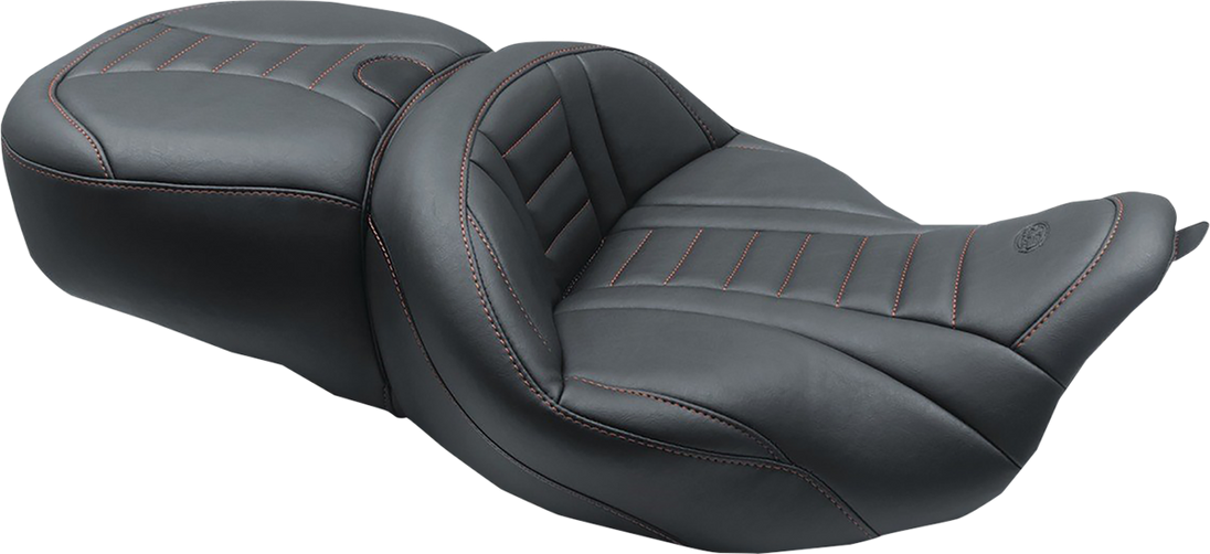 One-Piece Deluxe Touring Seat - Black w/ American Beauty Red Stitching
