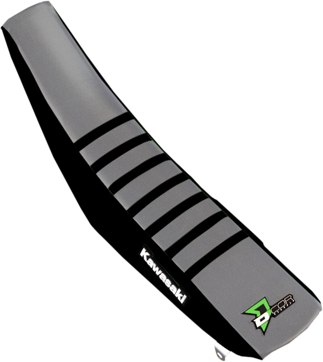 Seat Cover - Black/Gray - KX250F/450F '16-'20 Seat Cover Specifically designed for the demands of motocross Made from 10mm UV coated toughtek material Sewn together using dura strength nylon thread and ballistic nylon bias for all seams Patterns are created with factory teams to ensure a quality fit Fitment: