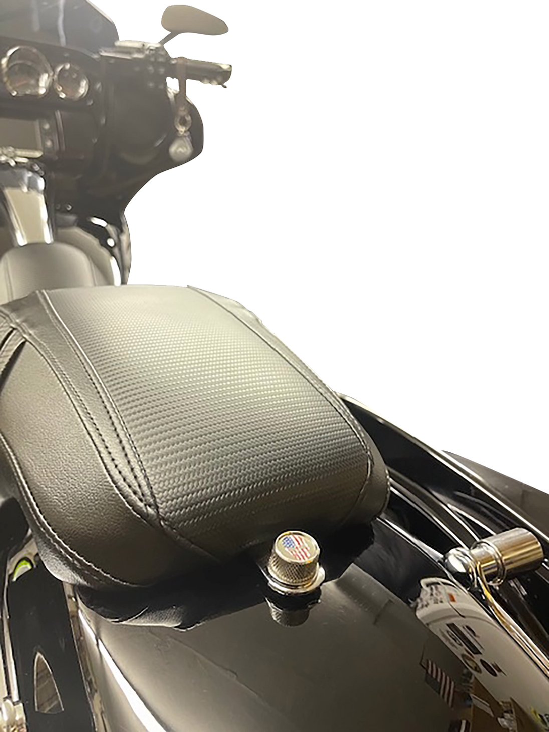 Seat Mounting Knob - Stainless Steel - Skull Seat Mounting Knob Knurled knob is easy to install or remove without tools A raised motif to complete that custom look Made from 316L stainless steel SAE 1/4"-20 thread Does not fit seats equipped with spring-loaded rear seat bracket. Fitment: