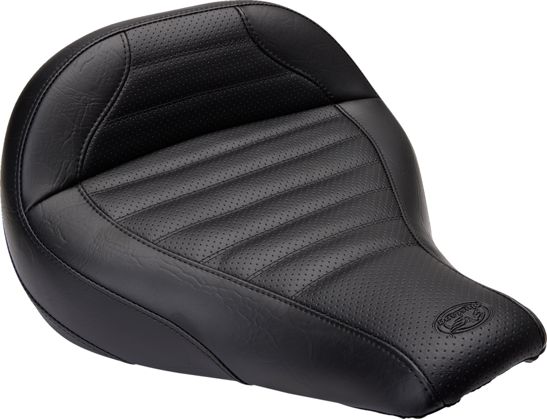 Solo Touring Seat - FLFB Touring Seat High-quality expanded vinyl cover combines the appearance of leather with the durability to withstand the elements Proprietary polyurethane-based foam compound offers comfort, support, and retains its shape Lightweight marine-grade fiberglass baseplate for long-term durability and support Stylish contrasting blend of smooth and perforate vinyl material Detailed double stitching with classic tuck & roll design Fitment: