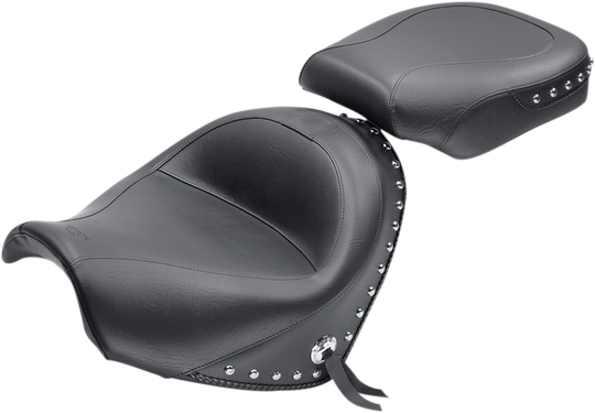 Seat - Wide - Touring - Without Backrest - Two-Piece - Chrome Studded - Black w/Conchos - Suzuki Wide Touring Seat Deeply contoured front bucket; passenger seat angles forward to support the rider's back Built-in steel...Regular price $740.00 -