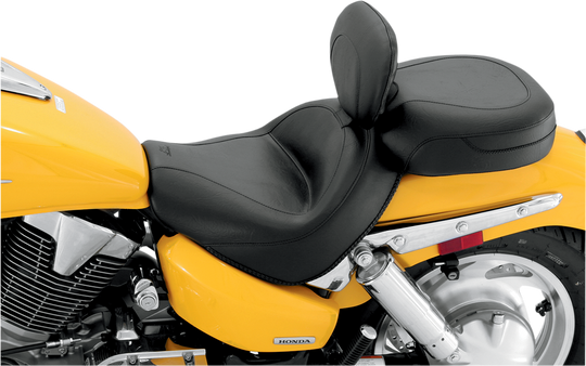 Seat - Vintage - Wide - Touring - With Driver Backrest - Two-Piece - Smooth - Black - VTX1300 Vintage Wide Touring Seat With Driver Backrest Deeply contoured front bucket; passenger seat angles forward to support...Regular price $995.00
