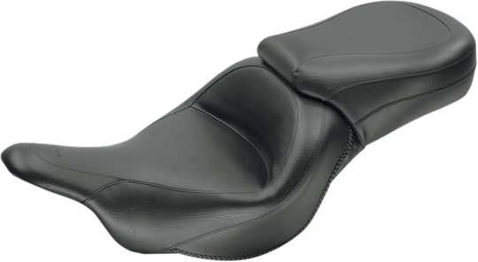 Seat - Vintage - Wide - Touring - With Driver Backrest - One-Piece - Smooth - Black - Vulcan Vintage Wide Touring Seat With Driver Backrest Deeply contoured front bucket; passenger seat angles forward to support...Regular price $995.00 -