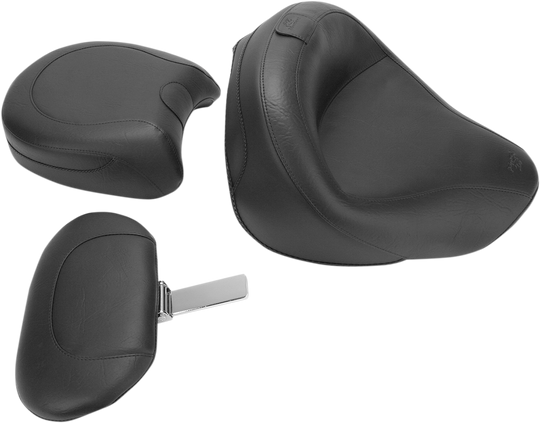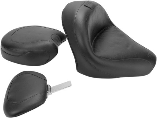 Seat - Vintage - Wide - Touring - With Driver Backrest - Two-Piece - Smooth - Black - VL Vintage Wide Touring Seat With Driver Backrest Deeply contoured front bucket; passenger seat angles forward to support...Regular price $995.00 -