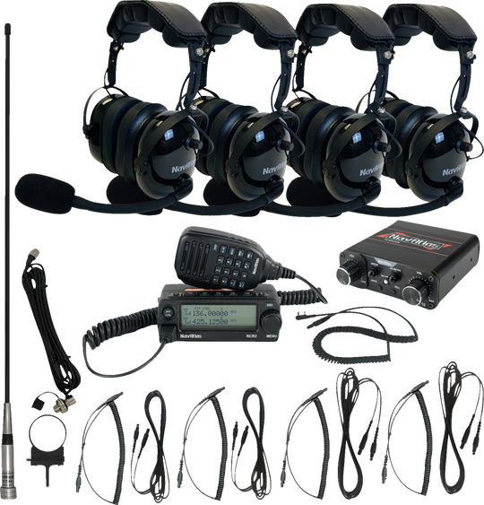 Intercom/Radio and Headset Kit - 4-Seat - Black Communication/Radio System Kit includes: 1 NNT10 Compact Intercom and 1 NCR2 Car-to-Car Radio, 2 Pair NO303 Over-the-Head (Stereo) Headsets, 2 PSC41 (PTT) push-to-talk cables, 2 HCF4 (Front) 4’...Regular price $1,699.00 -