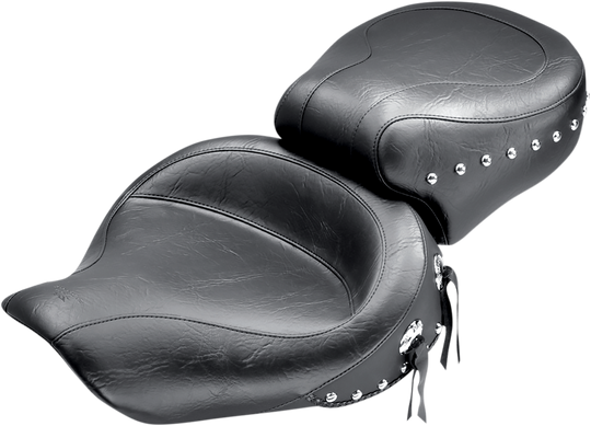 Wide Studded Seat - Dyna '06-'17 Studded 2-Up Seat Front bucket is trimmed with a functional skirt that comes down over the frame and fender for a clean, uninterrupted look Studded Naugahyde® cover is trimmed with...Regular price $685.00 -