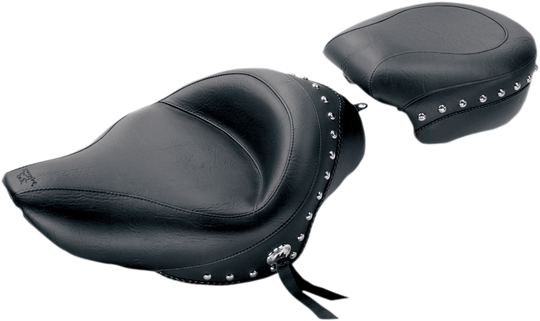 Wide Studded Seat - XL 04+ Studded 2-Up Seat Front bucket is trimmed with a functional skirt that comes down over the frame and fender for a clean, uninterrupted look Studded Naugahyde® cover is trimmed with...Regular price $685.00 -