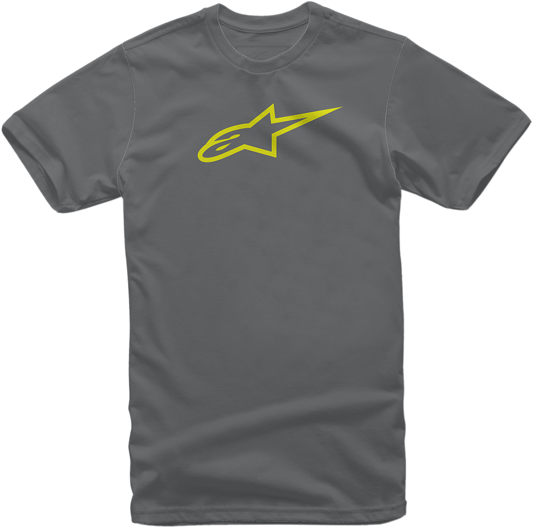 Ageless T-Shirt - Charcoal/Hi-Vis Yellow - Medium Ageless Classic T-Shirt Special Instructions: 100% RING SPUN COTTN 150G02CJP 100% RING SPUN COTTN 150G€‡02CJP 100% Combed ring spun cotton Classic printed t-shirt Front Ageless logo graphic; soft hand print Internal neck print, external labeling