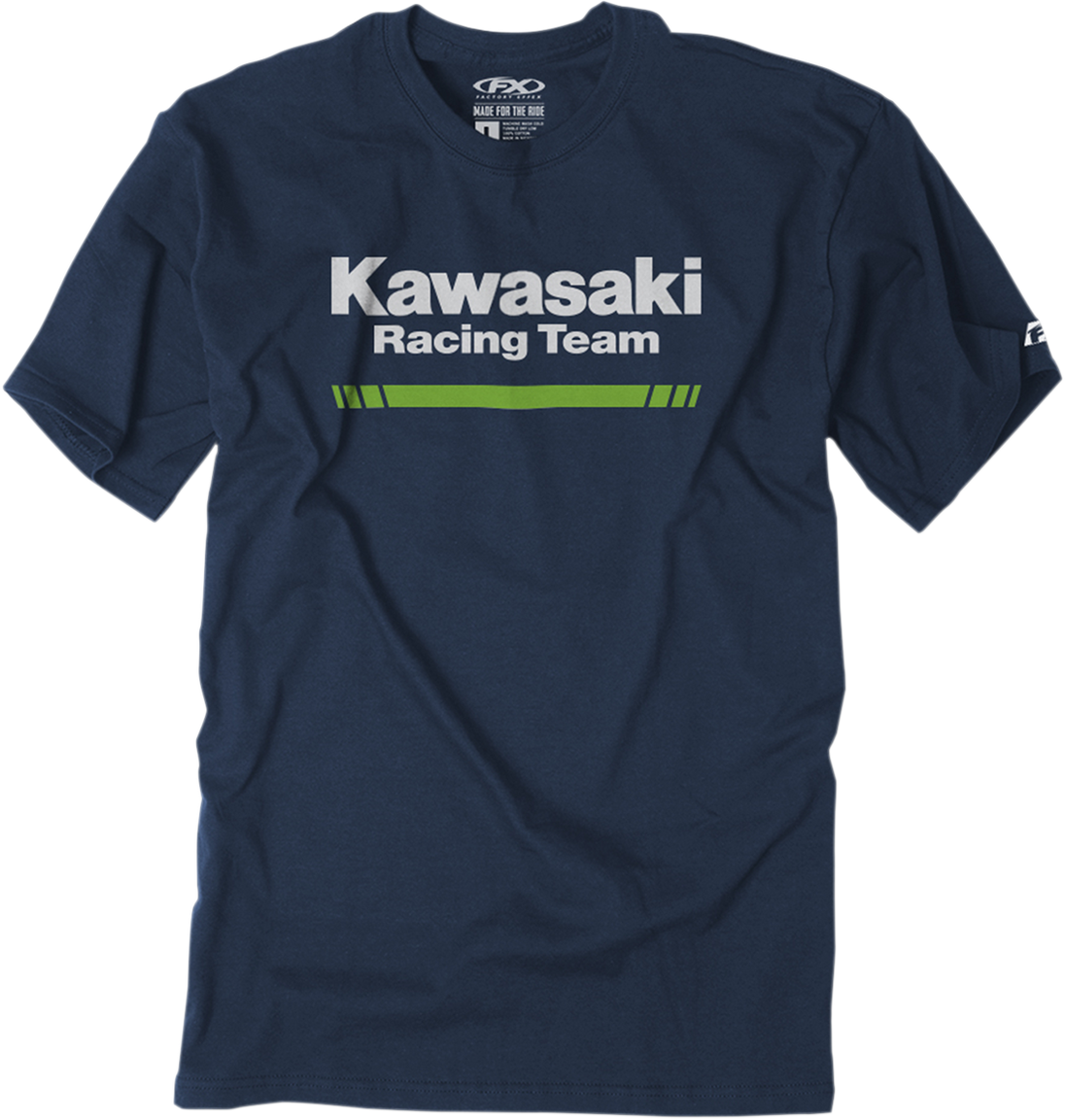 Kawasaki Stripes T-Shirt - Navy - 2XL Kawasaki T-Shirt Screen printed graphics on front and sleeve of t-shirt All t-shirt colors are 60% Cotton / 40% Polyester 4.3oz. Combed ring-spun with the exception of Navy (100% Combed ring-spun cotton) Official licensed product