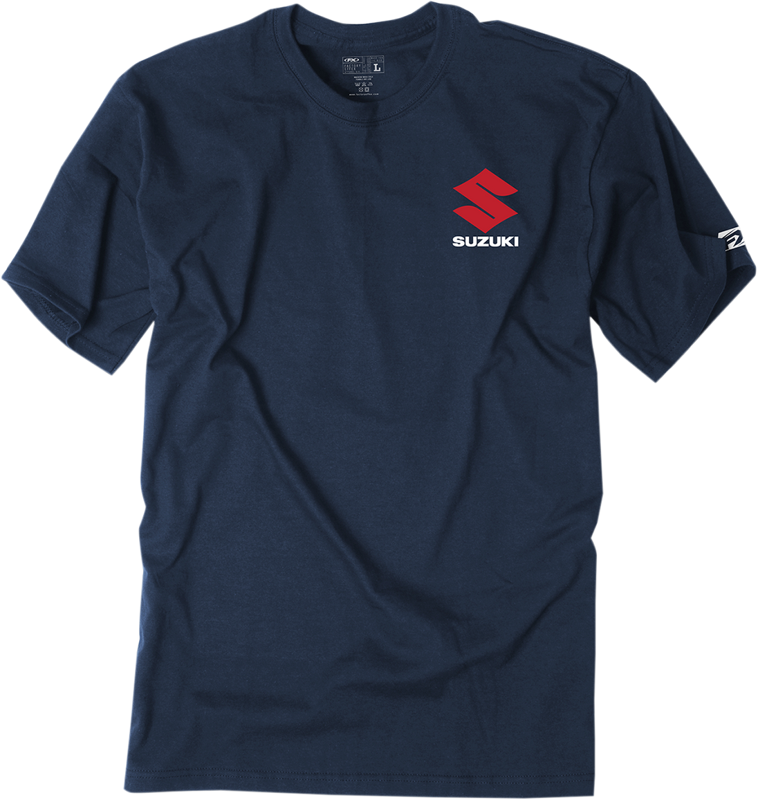 Suzuki Shutter T-Shirt - Navy - Medium Suzuki Shutter T-Shirt Screen printed graphics on front, back and sleeve of t-shirt 100% Combed ring-spun cotton Official licensed product