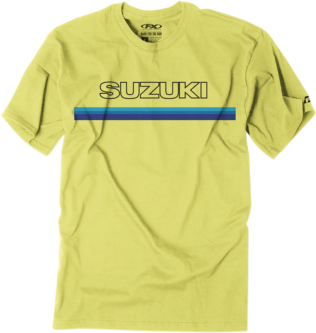 Suzuki Throwback T-Shirt - Yellow - Medium Suzuki Throwback T-Shirt Screen printed front and sleeve 60% Cotton / 40% Polyester 4.3oz. Combed ring-spun Officially licensed product