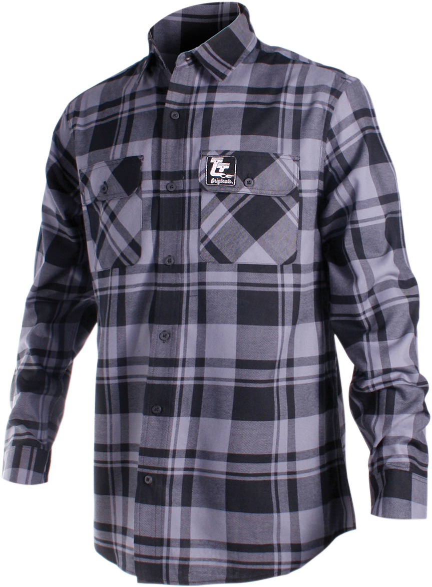 Long-Sleeve Flannel Shirt - Gray/Black - 2XL Throttle Threads Long-Sleeve Flannel Shirt Button front with two front-button chest pockets Printed graphic on back of shirt