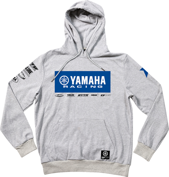 Yamaha Race Sweatshirt - Gray - Large Yamaha Race Sweatshirt Screen printed graphics on front and both arm sleeves Drawstring hood with tipped finish strings Content: 60% Cotton/ 40% Polyester Officially licenced premium t-shirtRegular price $75.95 -