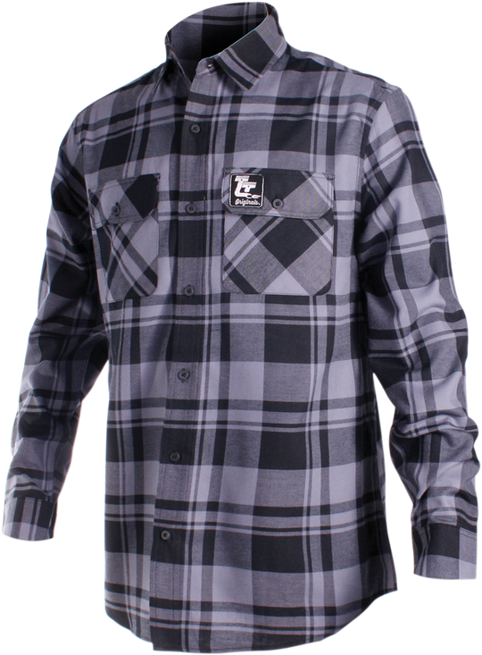 Long-Sleeve Flannel Shirt - Gray/Black - 2XL Throttle Threads Long-Sleeve Flannel Shirt Button front with two front-button chest pockets Printed graphic on back of shirtRegular price $74.95 -