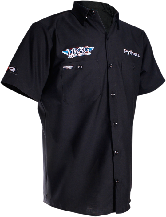 Drag Specialties Shop Shirt - Black - 5XL Parts Unlimited Shop Shirt Exclusive shop wear Button-closure chest pockets Collar buttons Pen stall in pocket Embroidered with front and back patches 65% Polyester/35% CottonRegular price $74.95 -
