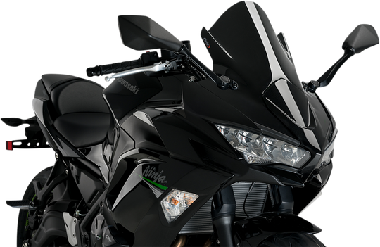 Race Windscreen - 18-7/8" - Black - Ninja Z-Racing Windscreen Features double the height of stock screens,side channels pick up airflow and send it sideways to reduce air pressure from rider’s shoulders and helmet The Z-Racing...Regular price $98.05 -