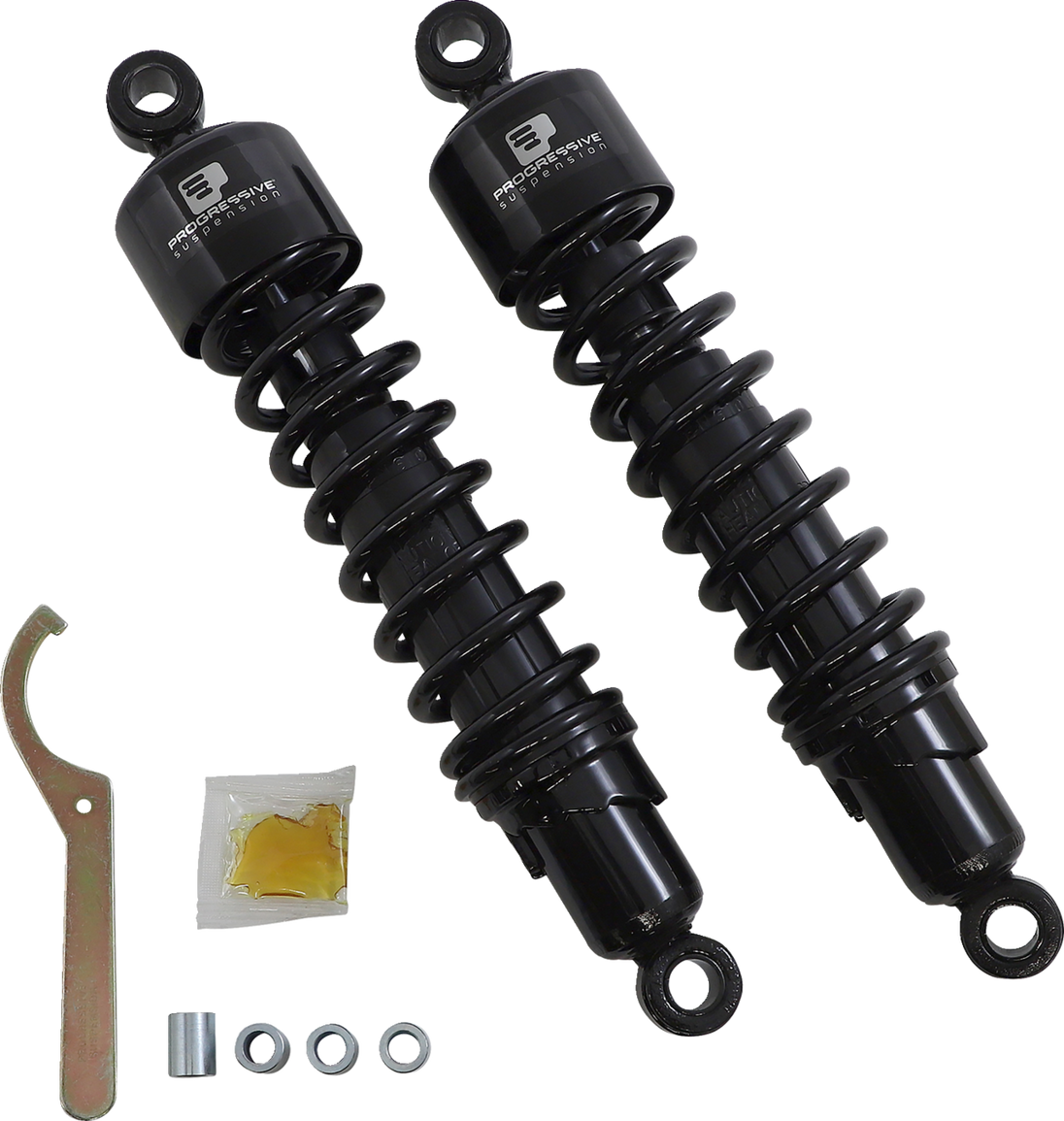 412 Series Shock - 13.5" - Standard 412 Series Shocks Nitrogen-charged shocks with multi-stage, velocity-sensitive valving automatically adjust to riding conditions Complete shock assemblies include chrome springs and covers Designed specifically for cruiser and touring bikes Progressively wound steel spring provides superior ride and handling A five-position cam-style preload adjuster allows you to dial in your ride Shocks are available in several lengths for custom applications Made in the U.S.A For the complete line of 412 Series curiser shocks see page 1281 of the '22 Parts Unlimited Street catalog Many fitments are available in either Standard or Heavy Duty. HD applications are recommended for bikes that are operated at or near the manufacturer's maximum load rating over 50% of the time. Before purchasing or attempting to install shocks that are different than the OEM length, confirm that your wheel travel can be altered without causing clearance issues such as swingarm/axle to exhaust contact as well as chain/belt guard or tire contact. Fitment: