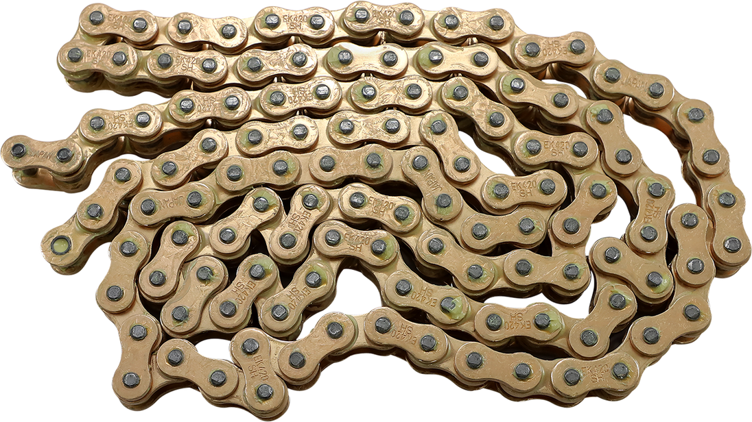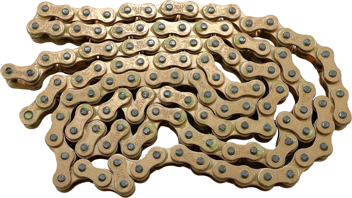 420 SH - Motorcross Series - Chain - 120 Links 420 SH Motorcross Series Chain EK motorcross chains utilize our CRH pin treatment which provides an extremely hard outside coating and softer inside to increase strength and reduce chain wear Comes with clip-type connecting link