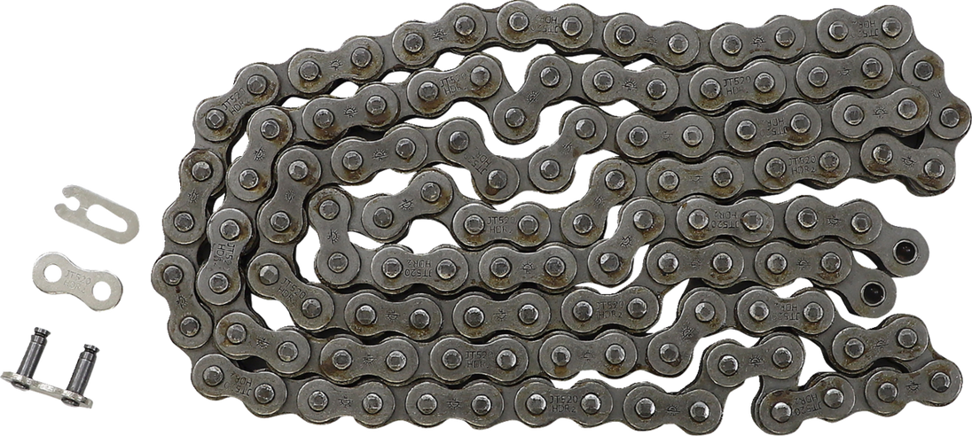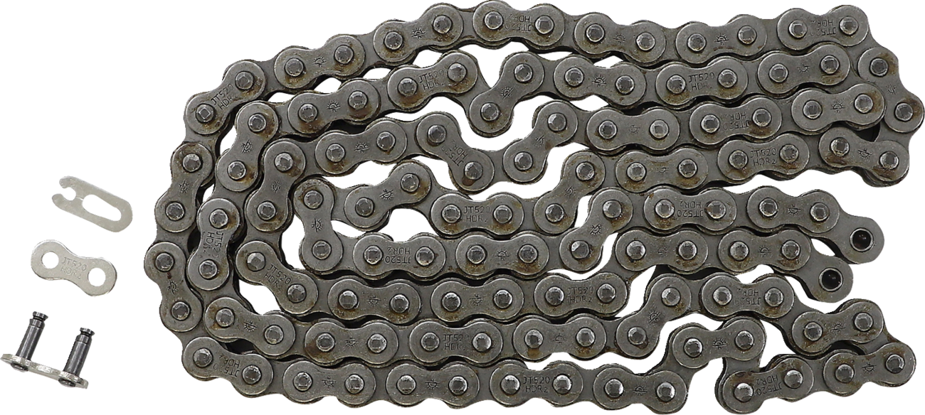 520 HDR - Competition Chain - Steel - 118 Links 520 HDR Competition Chain JT Chains produces a full range of superior quality motorcycle chains using leading-edge technology and only the highest grade of special steel alloys Specifications of the JT advanced power transfer chains meet or exceed the requirements of all modern motorcycles, street, MX, enduro, offroad and ATV A full range of chain types, from 50cc mopeds to 200+ bhp superbikes, in steel or gold finish Leading edge technology in materials and production ensures top class performance, strength and durability Specially engineered to favorably compare with all types and brands of motorcycle chain on the market
