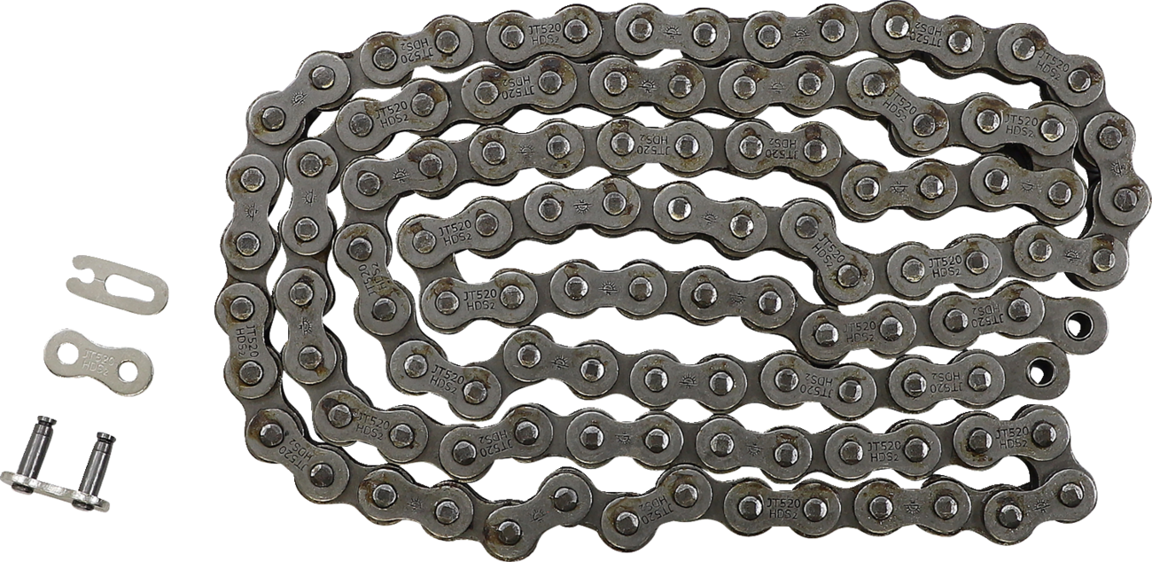 520 HDS - Ultimate Competition Chain - Steel - 110 Links 520 HDS Ultimate Competition Chain JT Chains produces a full range of superior quality motorcycle chains using leading-edge technology and only the highest grade of special steel alloys Specifications of the JT advanced power transfer chains meet or exceed the requirements of all modern motorcycles, street, MX, enduro, offroad and ATV A full range of chain types, from 50cc mopeds to 200+ bhp superbikes, in steel or gold finish Leading edge technology in materials and production ensures top class performance, strength and durability Specially engineered to favorably compare with all types and brands of motorcycle chain on the market
