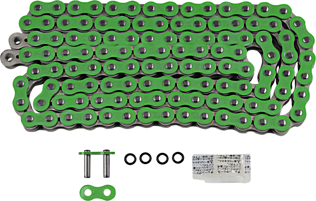 520 MVXZ2 - Chain - Green - 120 Links 520 MVXZ2 Chain For OEM replacement Quadra-X ring design increases wear life and reduces friction by as much as 40% for maximum engine performance Features lightening holes in side plates and large-diameter pins Includes rivet-style master link