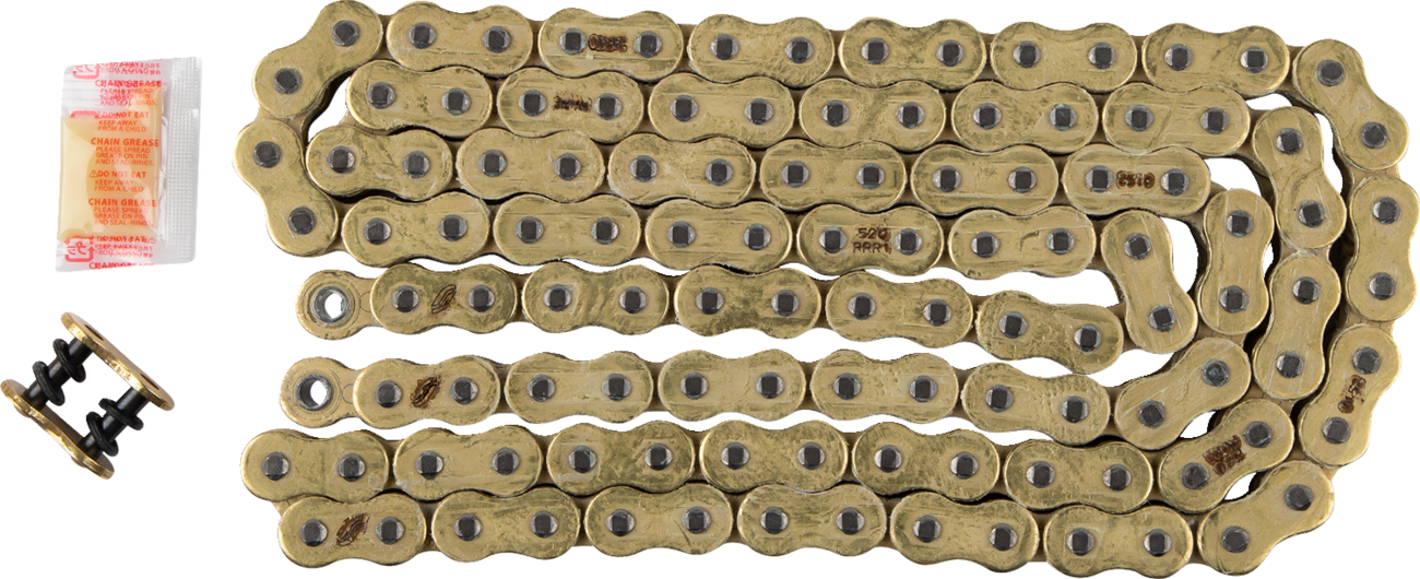 520 RRR1 Chain - 116 Links - Gold 520 RRR1 Street Chain Sealed ring design provides ultimate protection against high heat build up Sunstar's highest performance road chain featuring a high performance sealed ring and gold inner and outer plates