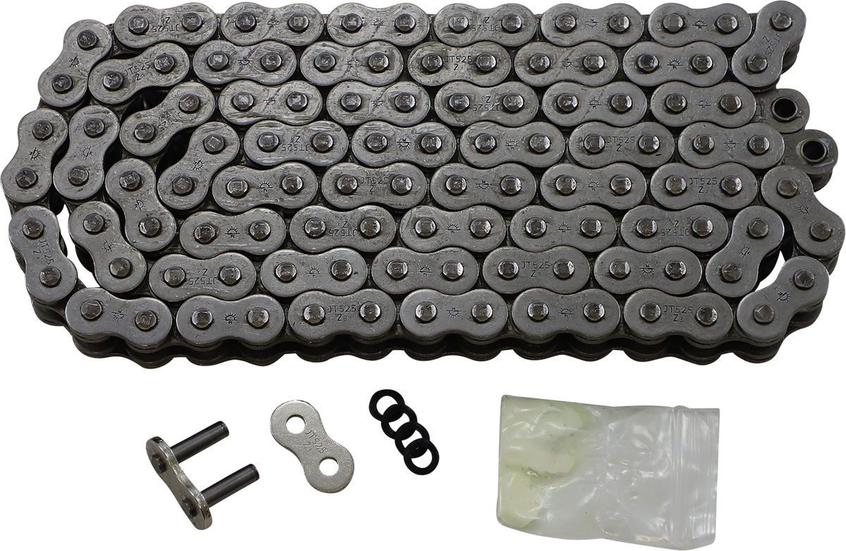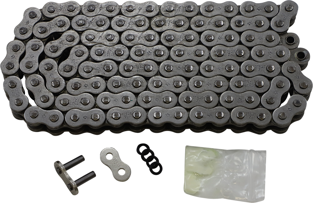 525 Z3 - Heavy Duty X-Ring Sealed Drive Chain - Steel - 112 Links 525 Z3 Heavy Duty X-Ring Sealed Drive Chain JT Chains produces a full range of superior quality motorcycle chains using leading-edge technology and only the highest grade of special steel alloys Specifications of the JT advanced power transfer chains meet or exceed the requirements of all modern motorcycles, street, MX, enduro, offroad and ATV A full range of chain types, from 50cc mopeds to 200+ bhp superbikes Leading edge technology in materials and production ensures top class performance, strength and durability Specially engineered to favorably compare with all types and brands of motorcycle chain on the market Minimum weight at maximum strength