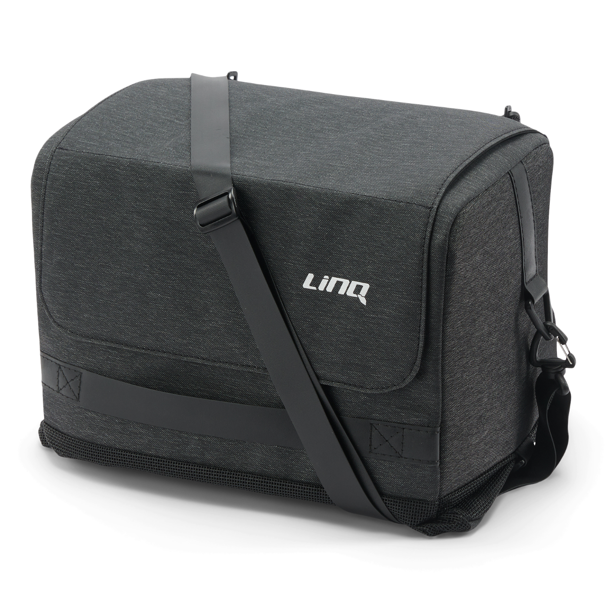 32 L (8.5 gal.) of UV resistant storage. Maximizes floor space by conveniently storing anywhere along perimeter railing or seat corner backrest. Toolless install with push or pull thanks to LinQ Lite clip-in system. Magnetic top closure enables quick access for frequent items, plus two water bottle side pockets. Retractable net can be kept closed when not in use. Requires LinQ Lite Holder for rail (295101276) for installation on the railing. Installation on the Seat Corner Backrest requires LinQ Lite Holder for backrest (295101044) when not standard on the vehicle. Dimensions: 13” L x 9” W x 22” H.