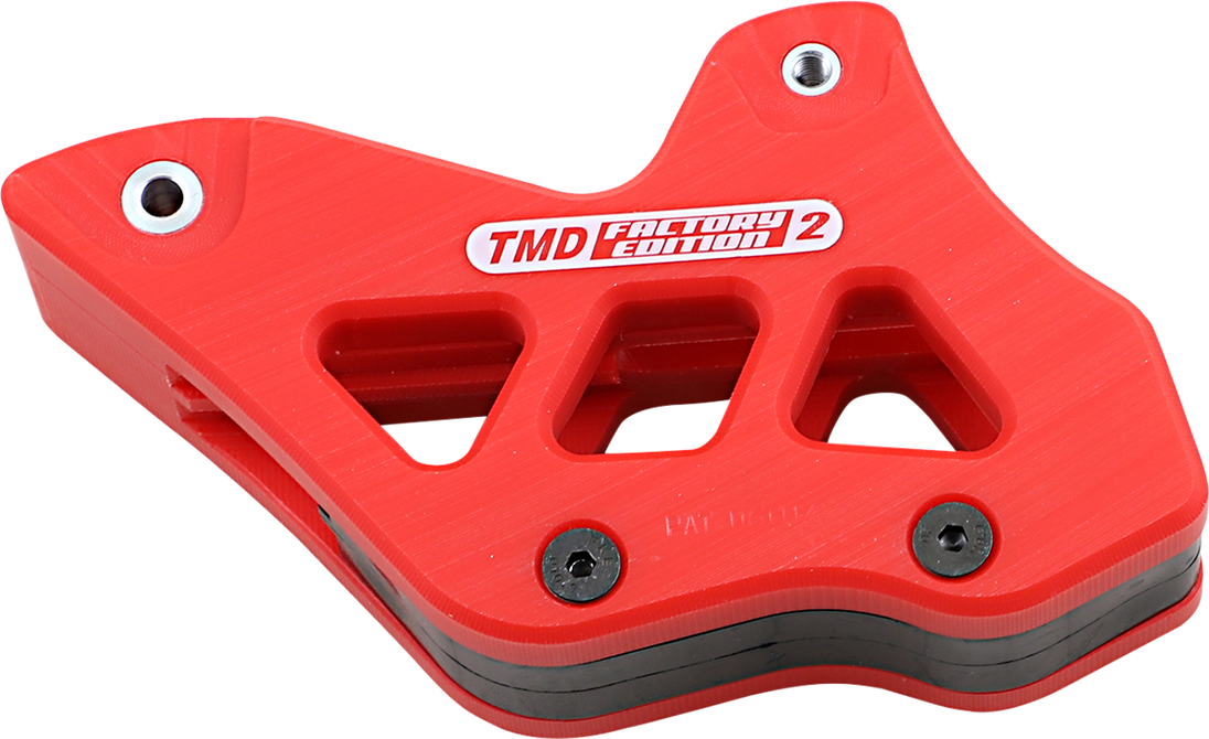 Chain Guide - Red Chain Guide Exclusive Plastic formula “RMS” (Return Memory System) is so guide returns to center on impact The only guide with a UV protection to resist color fade, and an oil additive to reduce friction Used by more Factory race teams than all other rear chain guides Fitment: