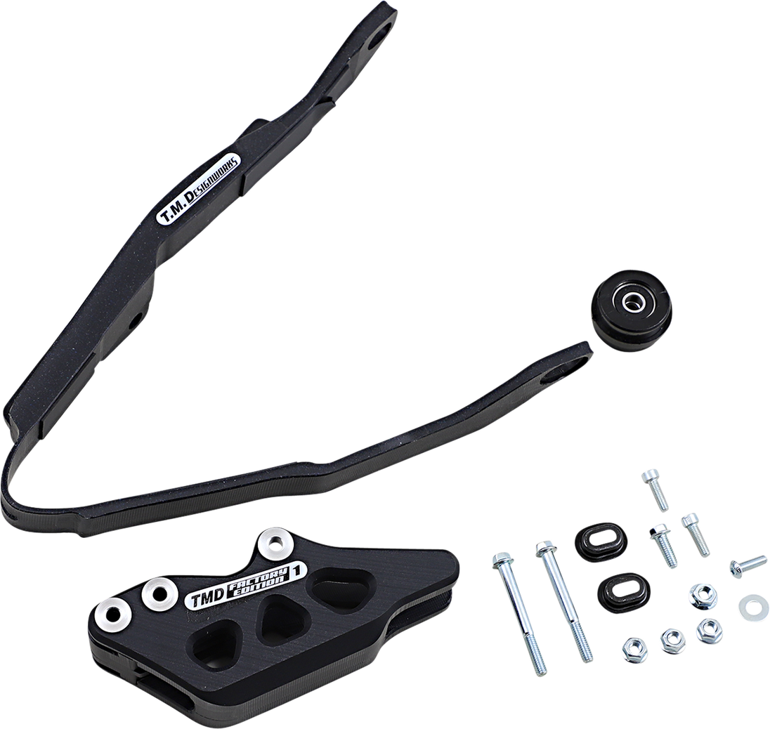 Chain Guide/Slider - Honda - Black Chain Guide and Slider Kit The kit includes dirt cross chain slider, lower powerlip roller or frame pad, and rear chain guide (either factory edition #1 or #2) The dirt cross sliders are made from the TMD compression-injected propriety plastic Most dirt cross sliders have noise-reducing dampening pad installed Fitment: