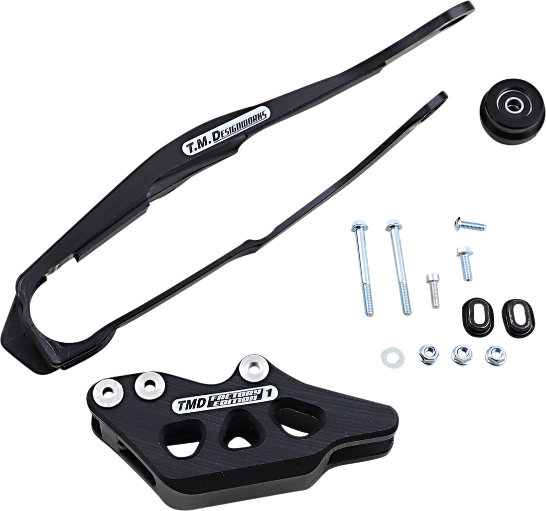 Chain Guide/Slider - Honda - Black Chain Guide and Slider Kit The kit includes dirt cross chain slider, lower powerlip roller or frame pad, and rear chain guide (either factory edition #1 or #2) The dirt cross sliders are made from the TMD compression-injected propriety plastic Most dirt cross sliders have noise-reducing dampening pad installed Fitment: