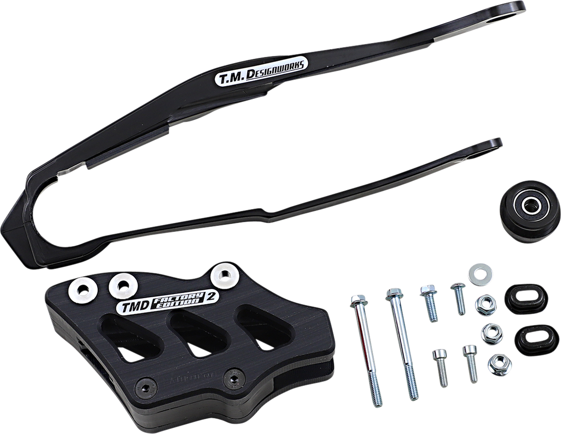 Chain Guide/Slider - Honda - Black Chain Guide and Slider Kit The kit includes dirt cross chain slider, lower powerlip roller or frame pad, and rear chain guide (either factory edition #1 or #2) The dirt cross sliders are made from the TMD compression-injected propriety plastic Most dirt cross sliders have noise-reducing dampening pad installed Fitment: