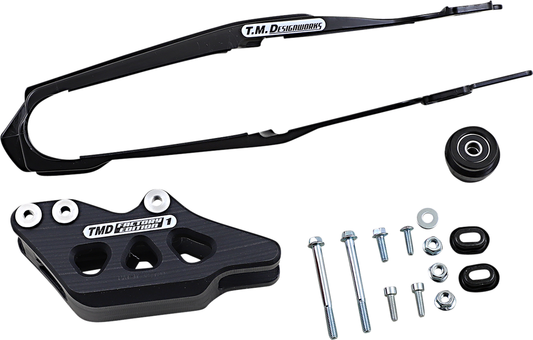Chain Guide/Slider - Honda - Black Chain Guide and Slider Kit The kit includes dirt cross chain slider, lower powerlip roller or frame pad, and rear chain guide (either factory edition #1 or #2) The dirt cross sliders are made from the TMD compression-injected propriety plastic Most dirt cross sliders have noise-reducing dampening pad installed Fitment: