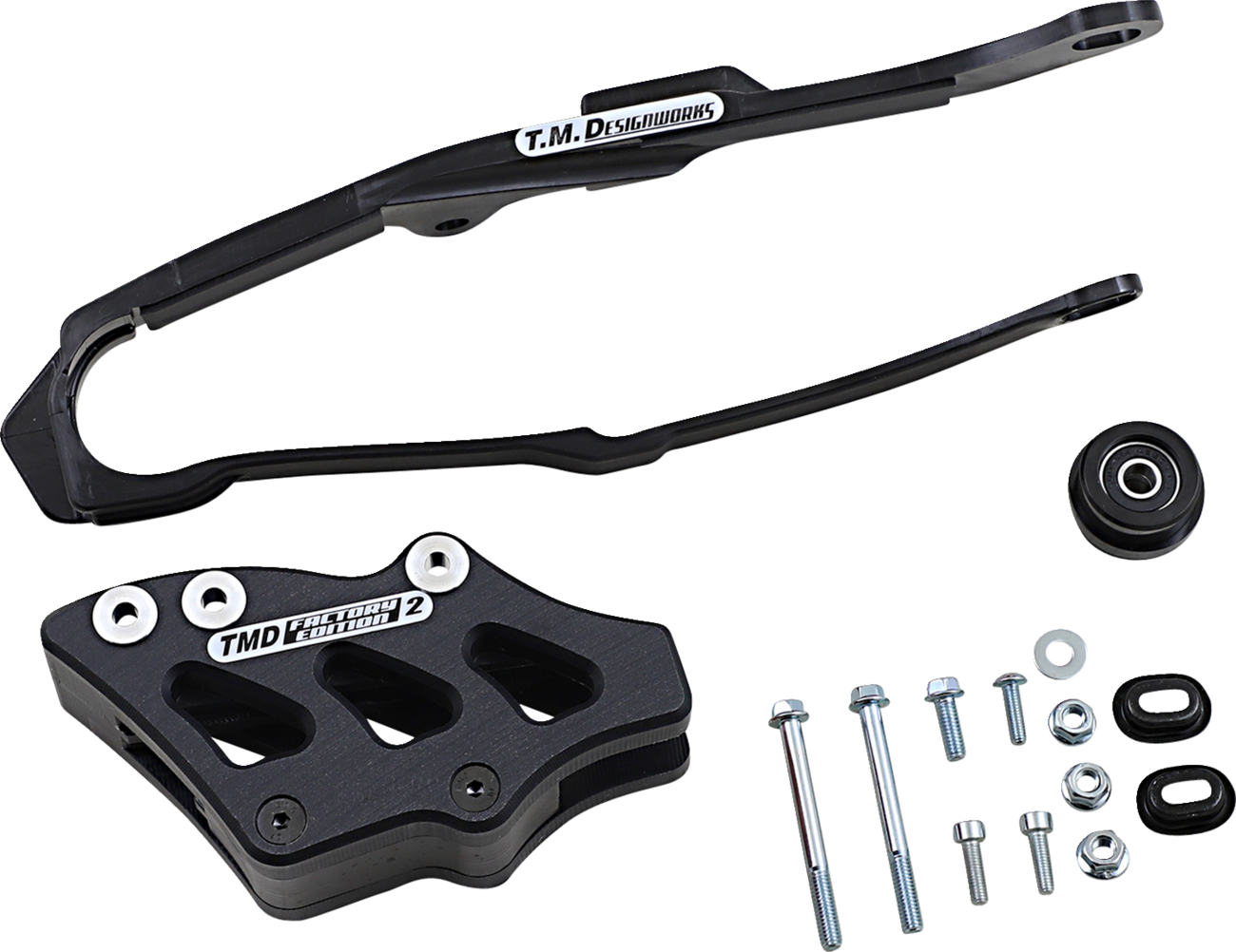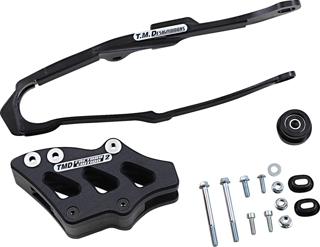 Chain Guide/Slider - Honda - Black Chain Guide and Slider Kit The kit includes dirt cross chain slider, lower powerlip roller or frame pad, and rear chain guide (either factory edition #1 or #2) The dirt cross sliders are made from the TMD compression-injected propriety plastic Most dirt cross sliders have noise-reducing dampening pad installed Fitment: