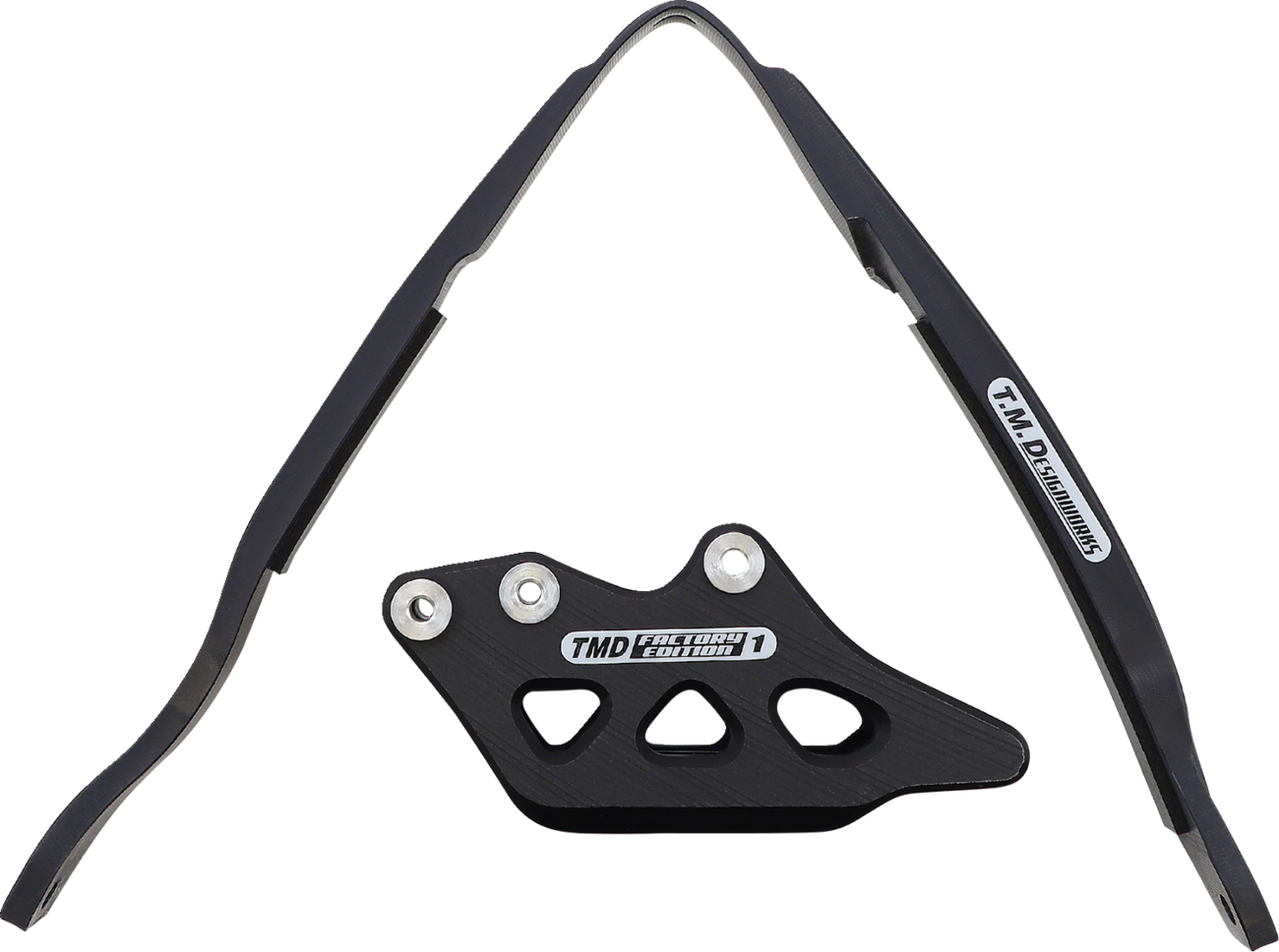 Chain Guide/Slider - Yamaha - Black Chain Guide and Slider Kit The kit includes dirt cross chain slider, lower powerlip roller or frame pad, and rear chain guide (either factory edition #1 or #2) The dirt cross sliders are made from the TMD compression-injected propriety plastic Most dirt cross sliders have noise-reducing dampening pad installed Fitment: