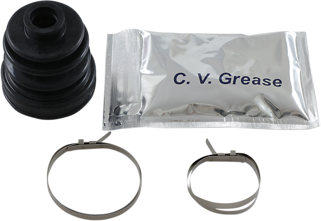 CV Boot Kit - Rear Inner/Outer CV Boot Kit 40% higher tensile strength and 50% more abrasion resistant than conventional material, suitable for the high joint angles and demands of today's ATVs and UTVs Kits include two stainless steel clamps that are designed to be tightened without the use of special tools Lithium-based molybdenum grease ensures good lubrication for long CV joint life Fitment: