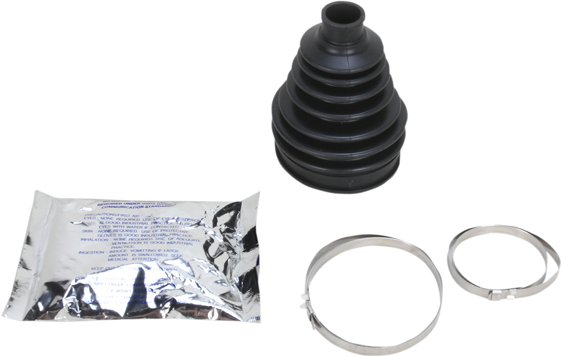 CV Boot Kit - Front/Rear Inboard - Polaris CV Boot Kit Standard — CV Boot Includes (MOs2) Molybdenum disulfide grease packs for longer life under high stress loads that are seen in CV Joint and axle applications Super Tough Polychloroprene material withstands heat, cold and abuse Includes 1 cv boot, clamps and grease Fitment: