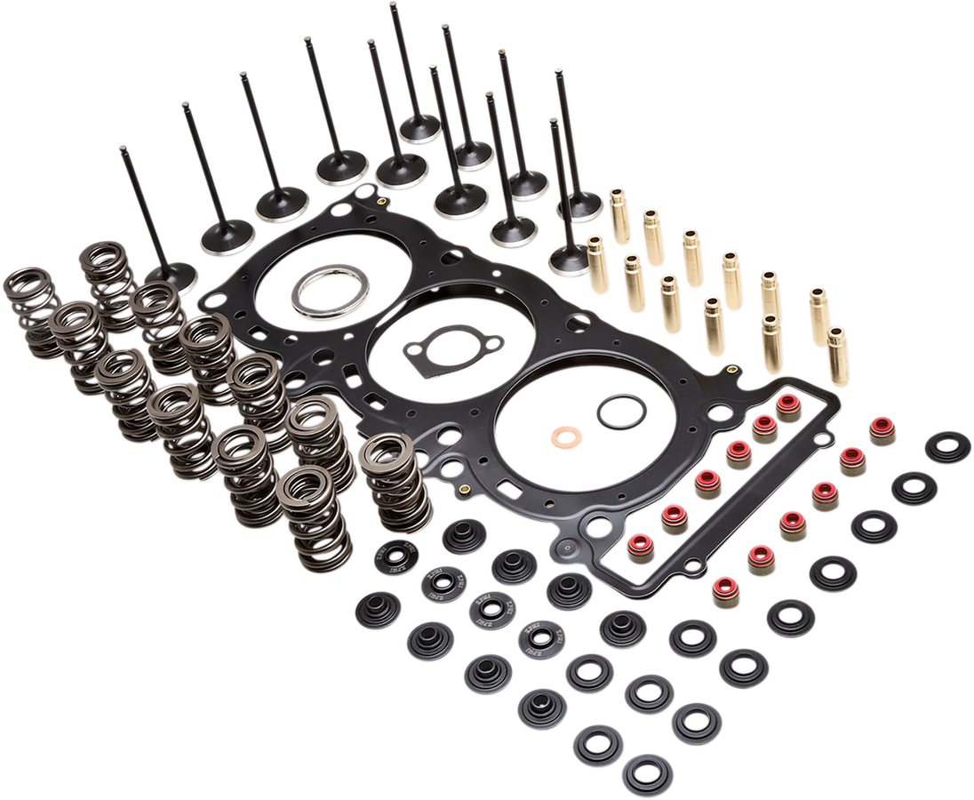 Cylinder Head Service Kit Cylinder Head Service Kit Kit contains all items to completely refresh and upgrade cylinder heads for popular Dirt/MX and Side x Side models Cylinder Head Service Kits include the below components: Lightweight Racing Valve Spring kits with steel or titanium retainers, beehive or dual valve springs, steel basewashers and Viton® valve stem seals A full set of C630 bronze high-performance valve guides for durability and heat management (standard size) A full top-end gasket kit including (base gasket, engine case gasket, exhaust gasket, head gasket, and other o-rings/washers depending on application) Fitment: