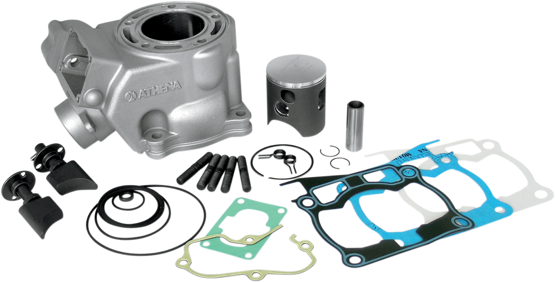 Cylinder Kit - 54.00 mm - YZ125 Race Cylinder Stock Bore Race Kit for 2-Stroke Aluminum cylinder is nickel carbide coated designed with larger water jackets Specially designed, high performance, hard anodized power valves (cannot use OEM) There is an aluminum cylinder head with a removable bronze dome allowing for a higher compression ratio and anti-detonation features (except where noted) Kit also includes a Cast-Lite flat top piston kit, and an Athena top-end gasket set that includes required seals and hardware Bolt on; no matching required except where noted Fitment: