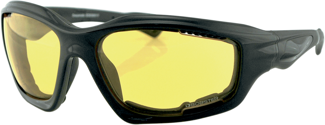 Desperado Sunglasses - Gloss Black - Yellow Desperado Sunglasses Wrap-style sunglasses perfect for larger heads Floats in water Gloss black Grilamid® TR-90 frame Frames feature closed-cell foam Anti-fog, shatter-resistant, polycarbonate lenses provide 100% UVA/UVB protection Microfiber carrying pouch included Do not accept prescription lenses