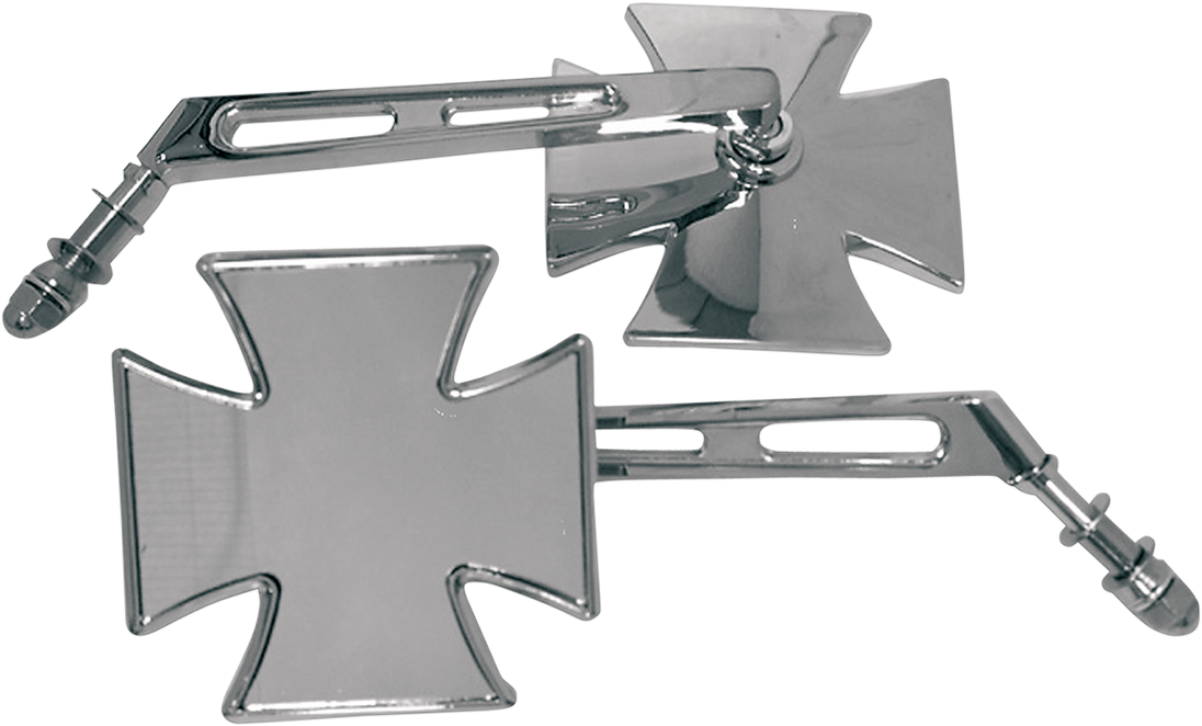 Cross Mirror - Left Die-Cast Custom Mirror — Split Mirrors feature chrome-plated die-cast heads with chrome steel stems