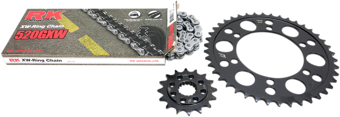 Chain Kit - Natural - Suzuki - GSX-R1000 '09-'16 Quick Acceleration Chain Kit Kit includes a premium Driven® C45 steel alloy black case hardened rear sprocket paired with Driven® C45 steel case hardened and quenched front sprocket RK’s 520 Steel Quick Acceleration Race Kit combines the enhanced performance of race gearing and durability of steel components Kit includes a one-tooth-smaller-than-OE front sprocket Fitment: