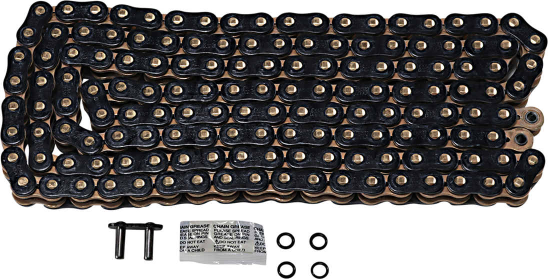 520 ZVX3 - Sportbike Chain - 150 Links ZVX3 Sealed Extreme Sportbike Series Chain For competition and OEM replacement Super/ultra strong; 520 series has tensile strength of 9,400 lbs. (EU: 4263,77 kg) , 530 series tensile strength of 11,100 lbs. (EU: 5034,88 kg) Minimize clearance between plates Improved stiffness and weight Includes rivet-style master link